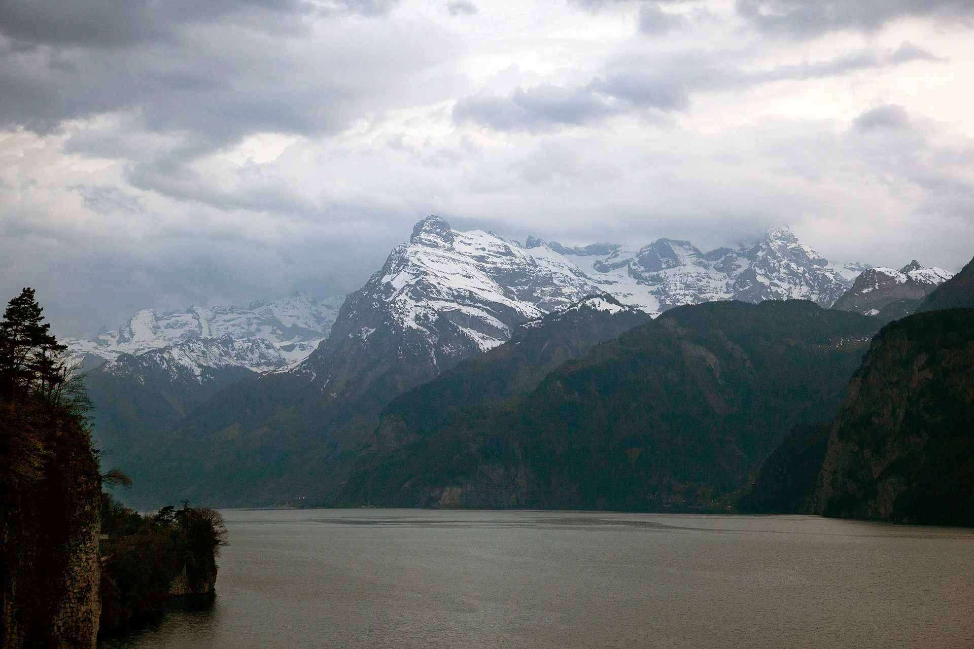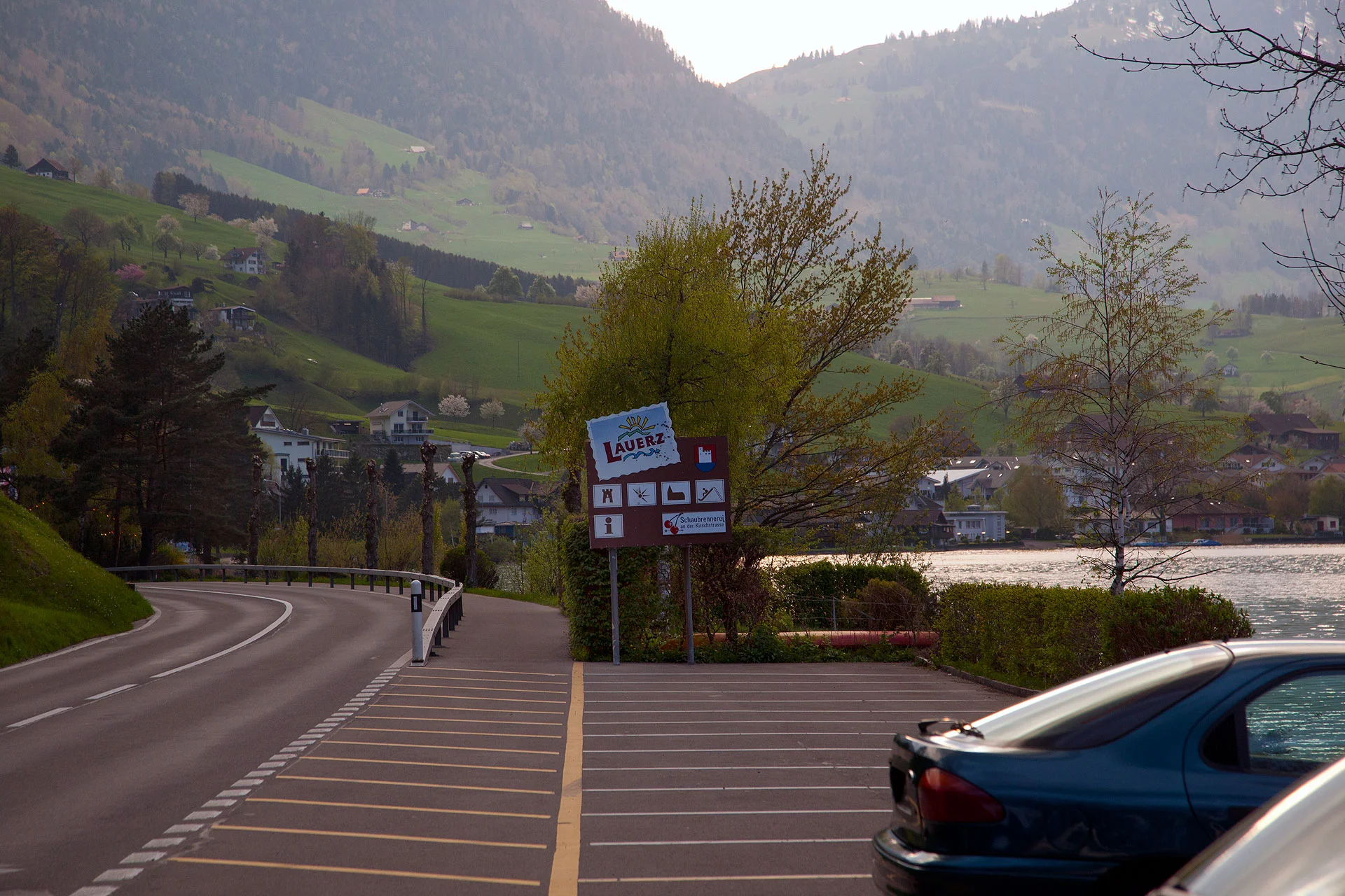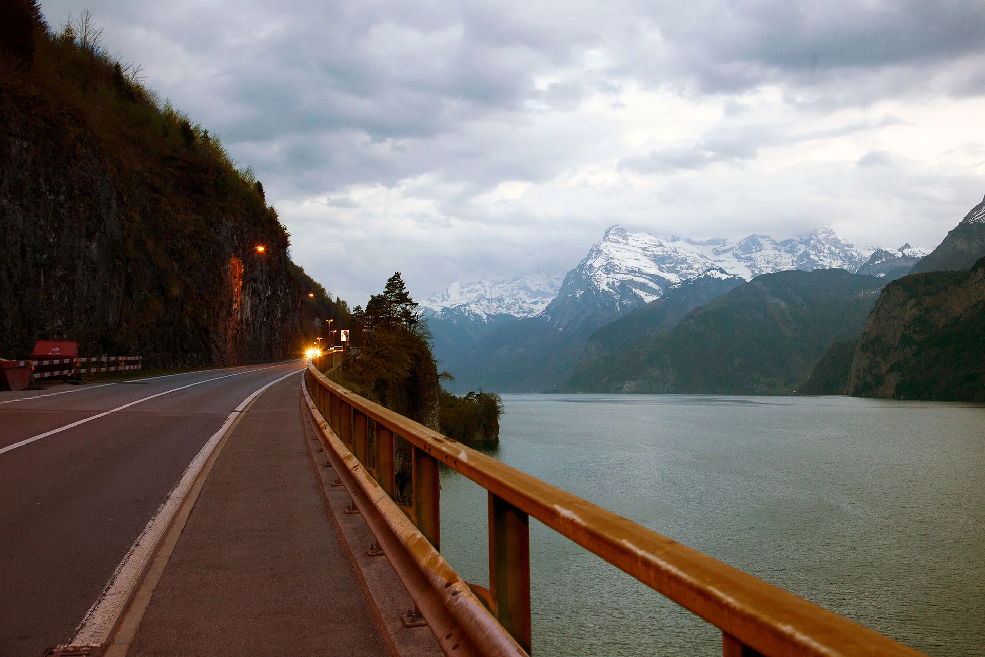 Further along the road, we drove along the road next to Lake Lauerz and eventually came up across the highest part of the road near Lake Lucerne, just before going into the tunnels when it was just about to turn dark.
